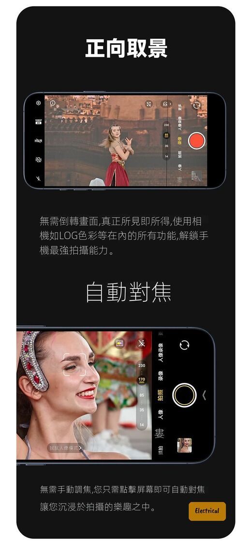 - 支援LOG色彩等所有相機功能,解鎖手機最強拍攝能力