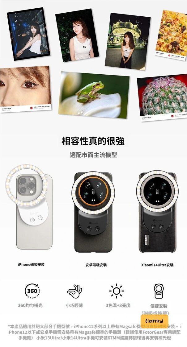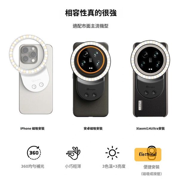 兼容性:iPhone 12以上(Magsafe)、安卓手機(需磁吸殼)、小米13U/14U(需轉接環)