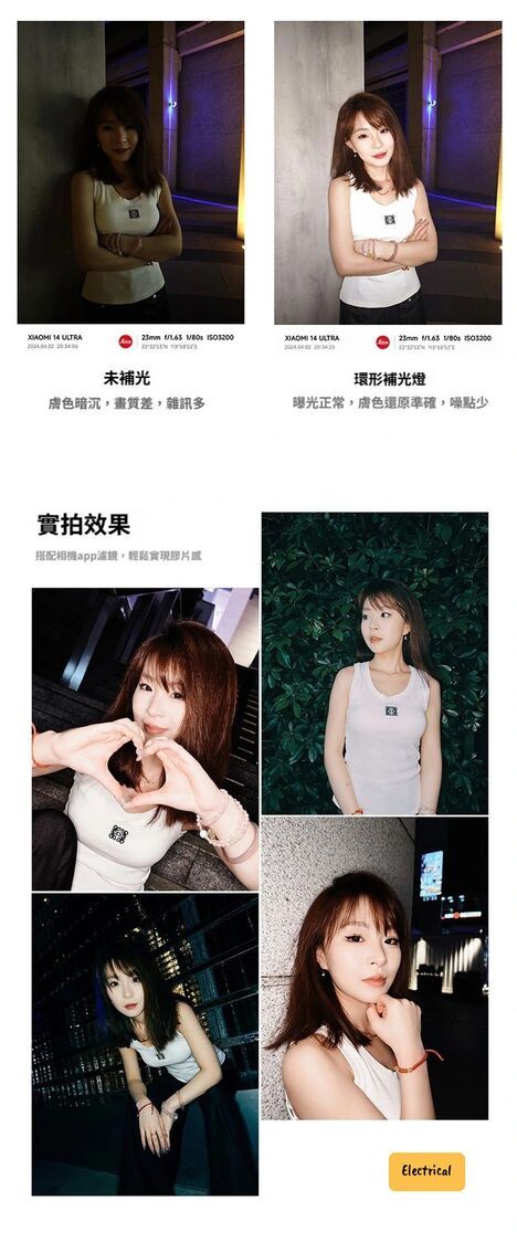 - 360°環形柔光,打造迷人環形眼神光