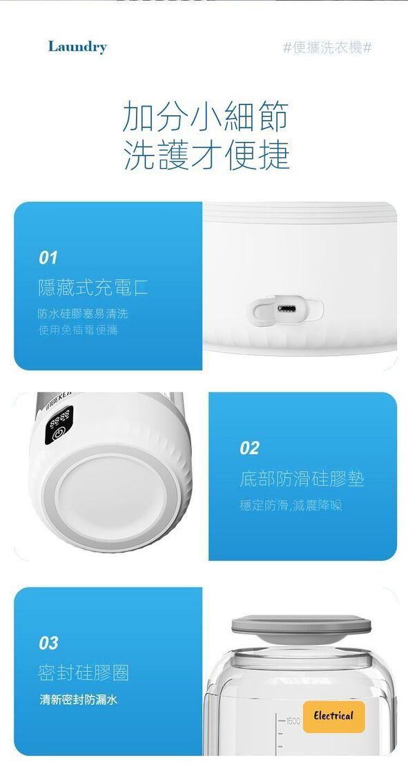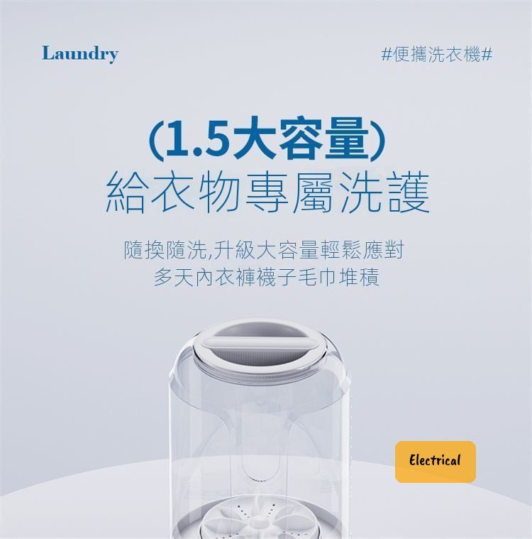 - 專衣專洗:1.5L容量分開洗襪(8對)/內衣(2件)/底褲(4條)/BB衫(1套)。