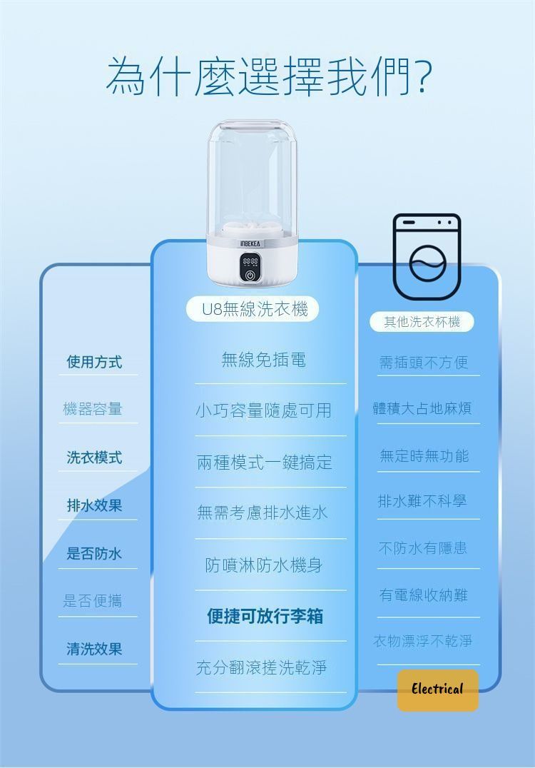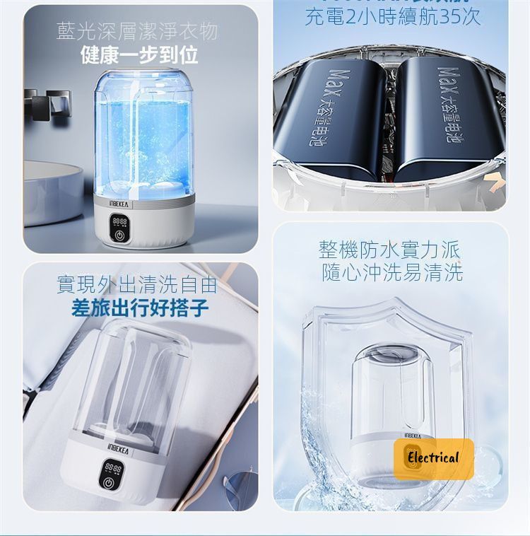 日本暢銷-U8無線迷你洗衣機|360°深層潔淨|充一次電洗35次