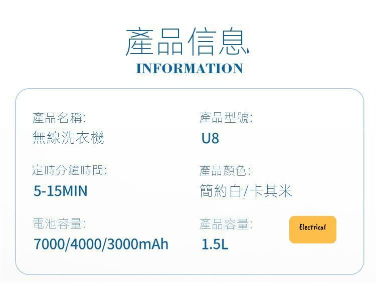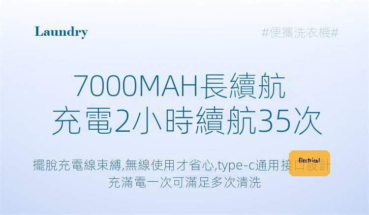 - 7000mAh電量:Type-C快充2個鐘,夠洗35轉。