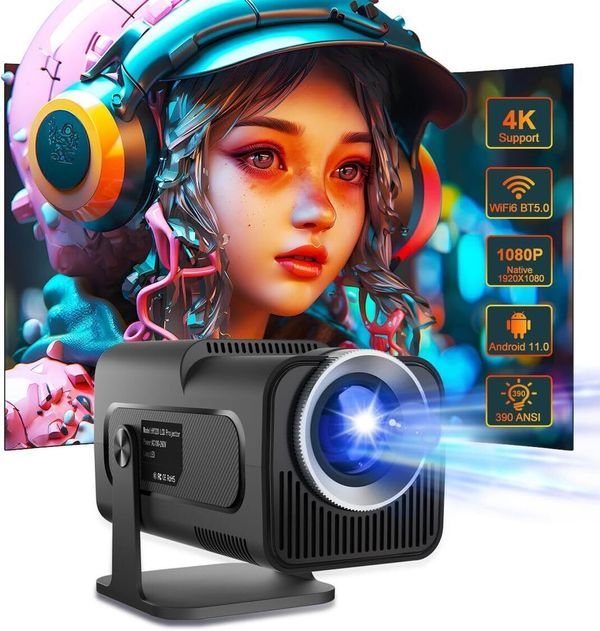 OTHER-迷你便攜式投影機 4K,原生 1080P HY320 智慧投影儀,Android 11,支援 WiFi 6 BT5.0 自動梯形校正 150 吋顯示器短焦投影儀