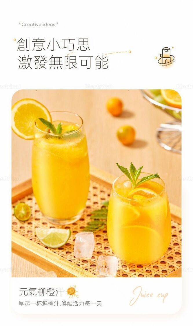 - 朝早一杯鮮橙汁,即刻醒神。
