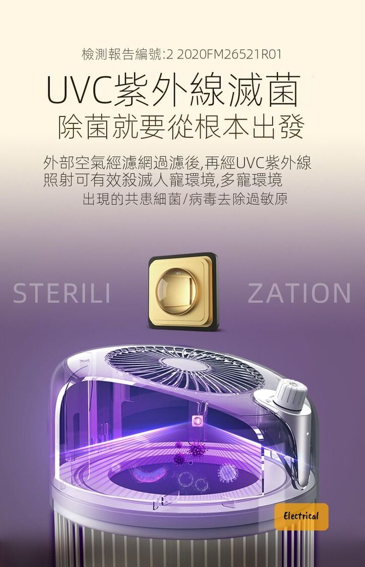 - UVC紫外線燈+H13醫療級HEPA濾網,殺滅99.97%細菌病毒