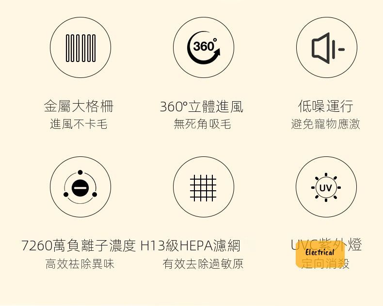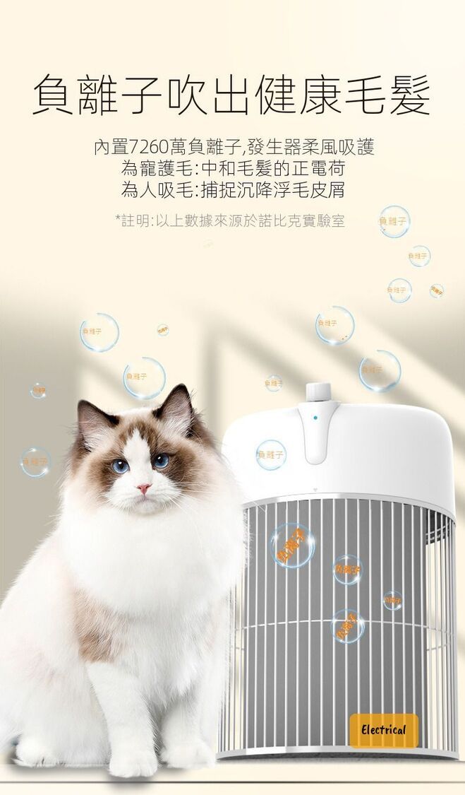 - 7260萬負離子發生器,中和寵物毛髮靜電,同時沉降空氣中皮屑
