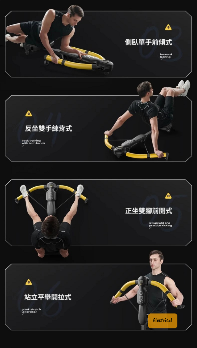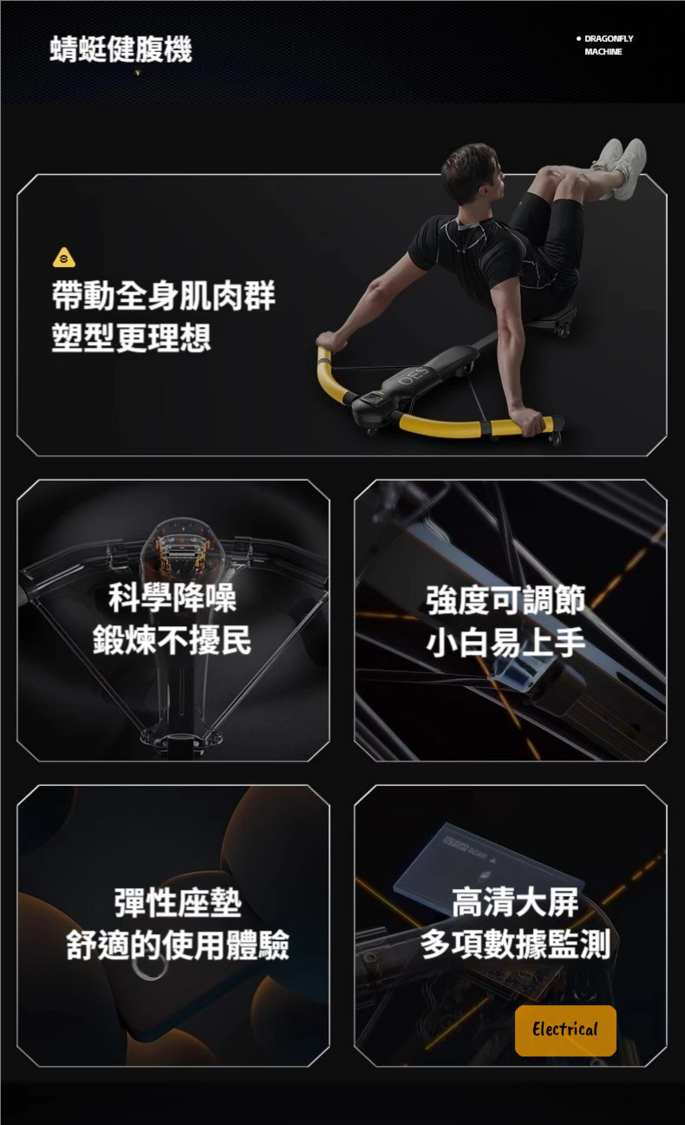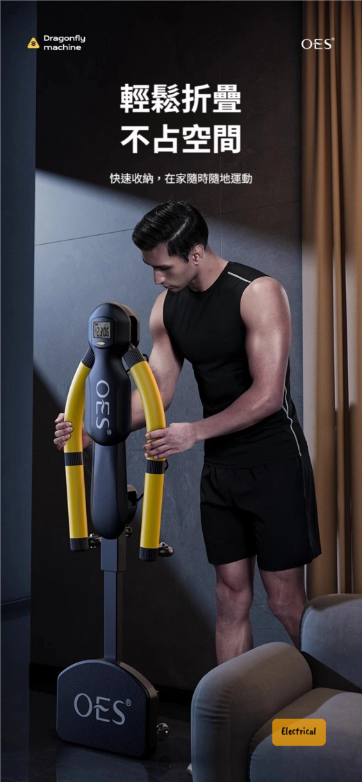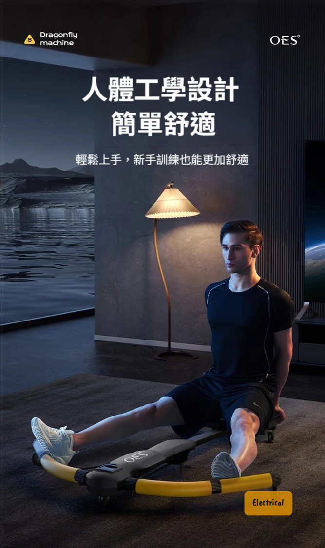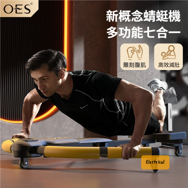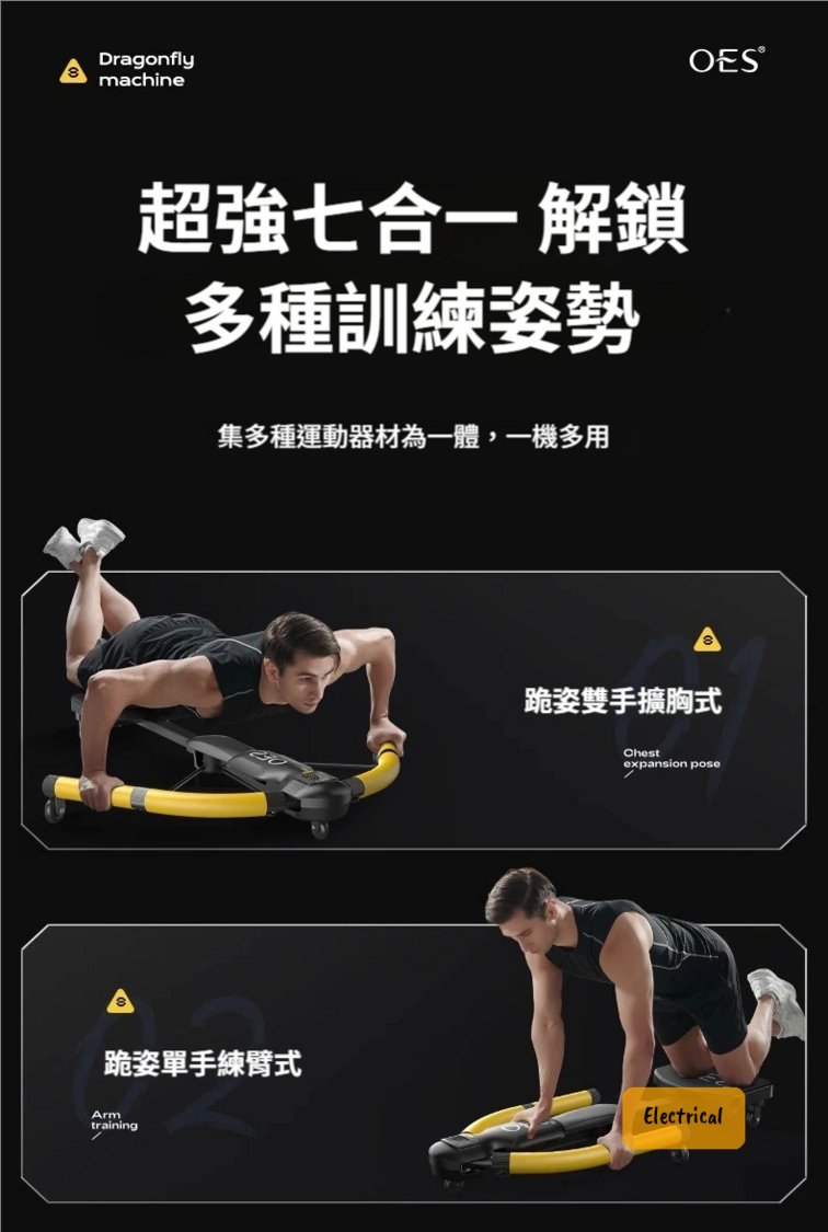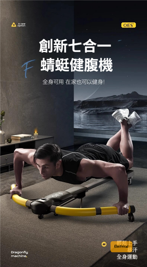 呢部唔單止係健腹機!OES蜻蜓機巧妙將七種健身器材功能合而為一:健腹輪、划船機、俯卧撐架、腿部屈伸機、啞鈴、擴胸器同埋手臂訓練器。針對腹肌、胸肌、背肌、手臂、腿部同臀部,喺屋企就可以進行全身鍛鍊,塑造理想身形。
