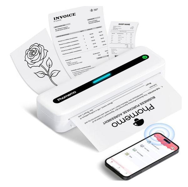 M832 攜帶式無線旅行印表機,大小與鉛筆盒相當。可輕鬆放入您的背包或公事包中,適用於汽車、卡車、商務旅行、小型辦公室、大學、家庭使用。您可以隨時隨地列印文件、合約、發票、登機證、學習筆記、食譜、信件和收據!
