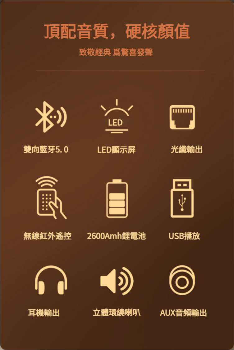 8:多種不同接口,相容於不同設備。可連接市面上不同的設備,如擴大機、電子管功放