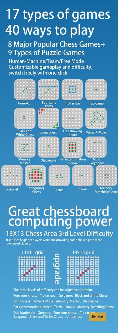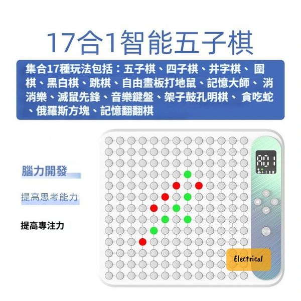 - 17種遊戲:五子棋、圍棋、記憶大師、俄羅斯方塊等