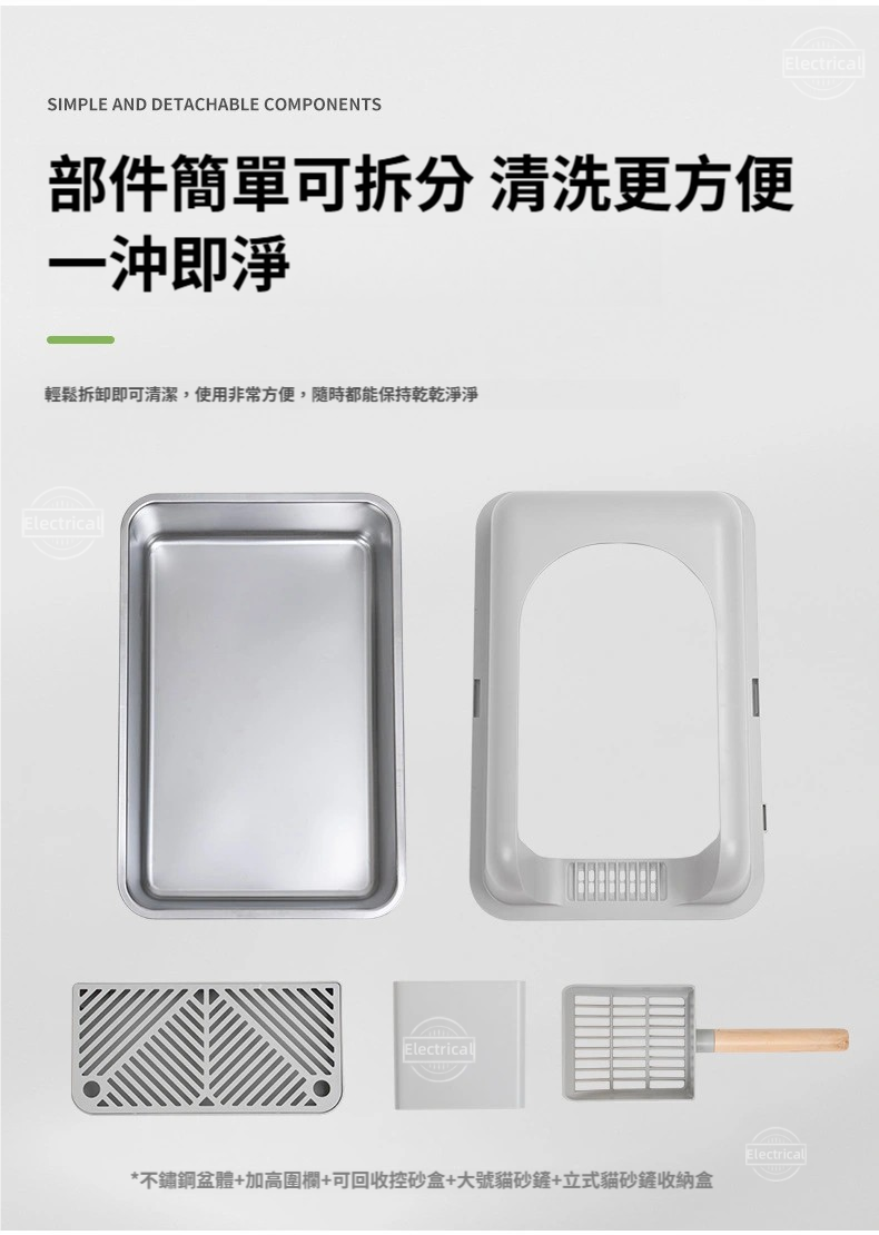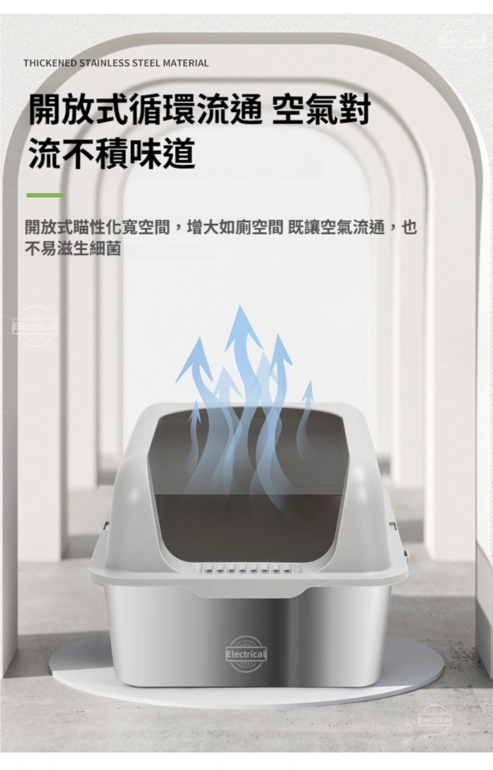 鏡面拋光不鏽鋼+流線型設計,放客廳都唔失禮!防跣手邊緣+圓角處理,主子出入唔刮腳。仲有隱藏式提手位,搬去沖涼房超就手!而家買即送價值$98嘅直立剷,主子開心,主人更安心!🐱💖