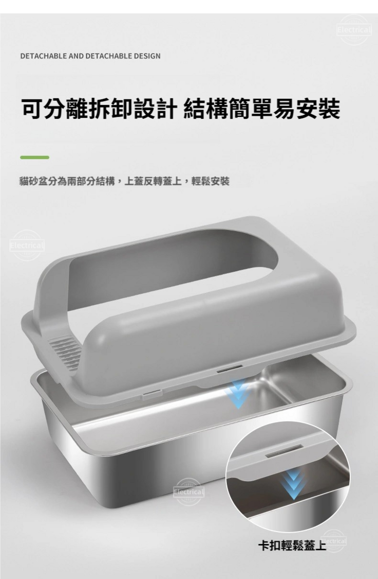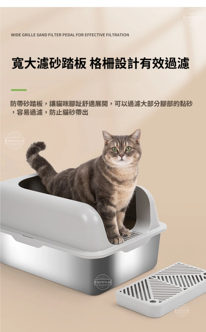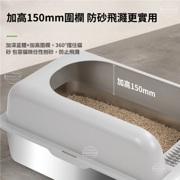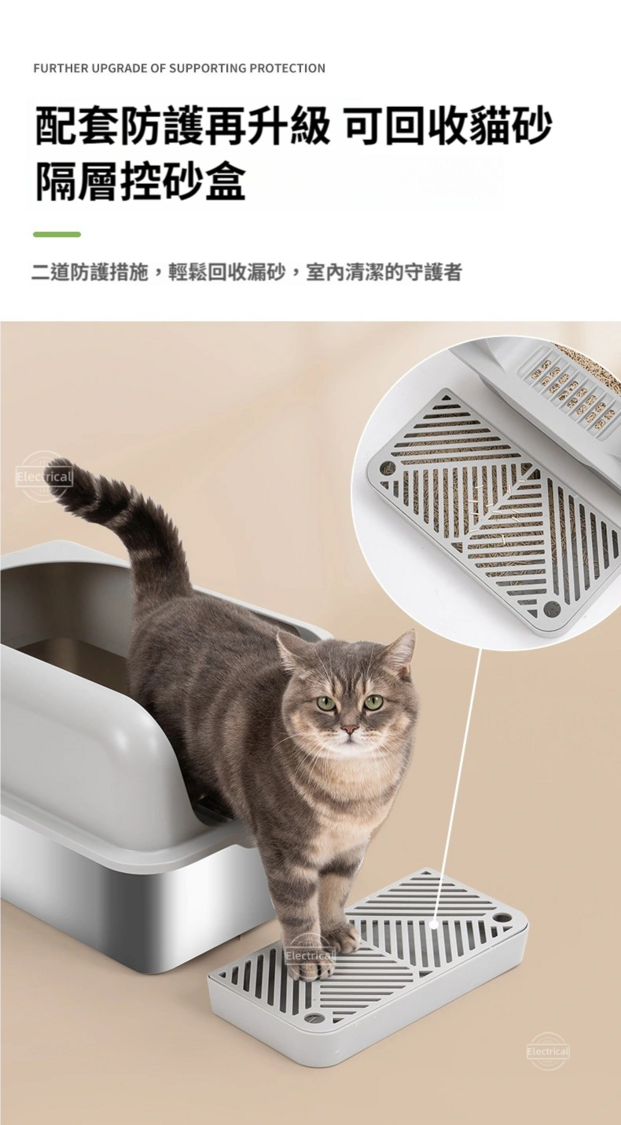 全城熱賣-【毛孩貴族之選】加厚防漏砂不鏽鋼半封閉貓砂盆|20L巨無霸容量|一鏟即淨不沾底|自帶回收砂分隔架+過濾踏板|香港潮人家居必備|150mm防濺圍板|可拆式組件|附直立剷|大型貓咪專用