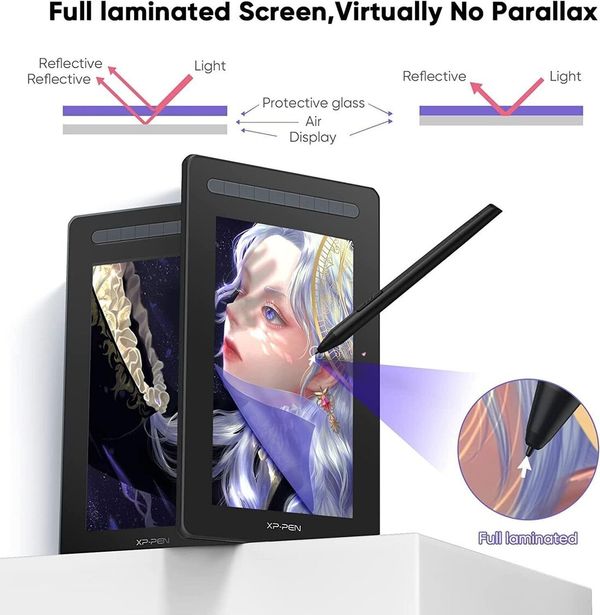 Artist 16 Gen2採用全貼合技術,將玻璃與屏幕之間無縫貼合,為您營造零視差、無視覺干擾的創作環境。 15.6英寸IPS全貼合全高清屏搭配178°視角,繪畫時,筆尖和光標位置基本無偏移,所見即所想所畫,本真還原紙上繪畫創作體驗,初學者也能輕易上手。