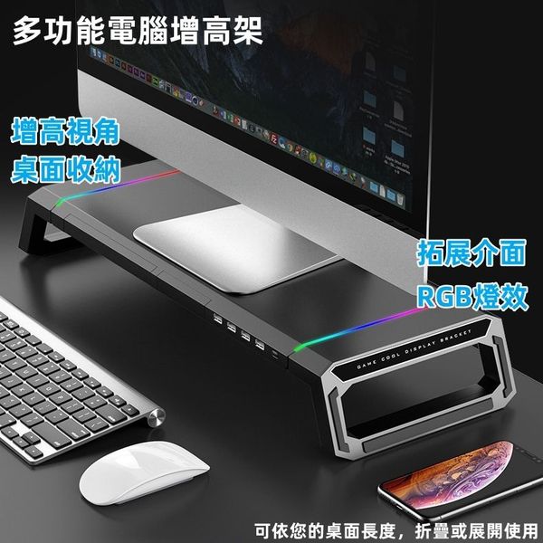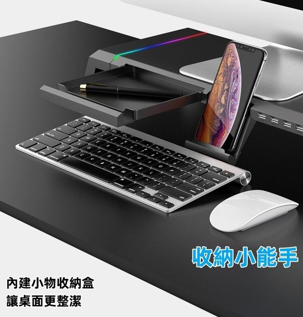 香港-顯示器支架 / 托架 / 桌面鍵盤架 / 電腦增高架 / 顯示螢幕拓展塢 / 墊高底座 / 手機支架 / 桌面收納 / 4個USB接口 / RGB燈效