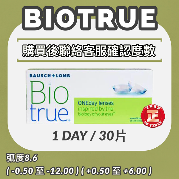 博士倫Biotrue 1 Day 近視/遠視每日即棄隱形眼鏡 Contact Lenses 30片裝