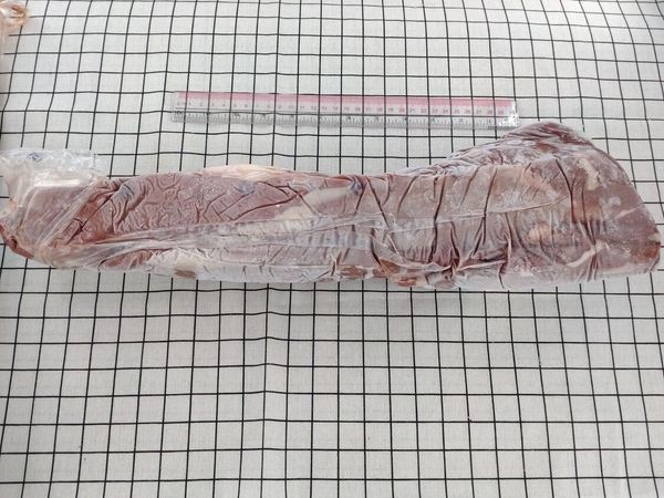 原條牛柳多數會分為三段,首先去除多餘的脂肪及筋膜。