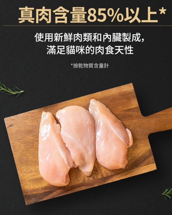 無穀配方(不含玉米、小麥或麩質)、無添加人工色素。