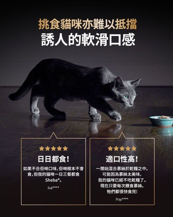 SHEBA 慕斯貓主食罐系列,星級饗宴,嚴選食材,奢華味美,貓皇首選。