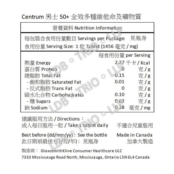善存 Centrum 全新研發,Centrum 善存男士 50+ 綜合維他命礦物質。 它含有多種維他命和礦物質,滿足 50 歲以上男性的營養需求,同時額外添加葉黃素,維他命 B 和維他命 D,幫助 50 歲以上的男士更好地保養骨骼和牙齒,有助于維持正常的肌肉功能,保持視力,並能幫助提高免疫功能。