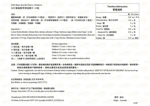 EZZ BONE GROWTH CHEWS 是一種優質配方,含有 13 種必需營養素,包括礦物質,維生素、氨基酸、益生元和草藥,支持兒童健康成長和發育。