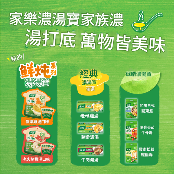 LHS-250402_00001【濃湯寶】全家福 老母雞湯*2盒+豬骨濃湯*1盒+菌菇靚湯*1盒+牛肉*1盒+清雞湯*1盒(共24顆) $99