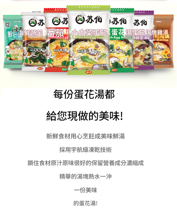 蘇伯湯 – 即溶速食湯菠菜紫菜蛋花湯蔬菜鮮蔬芙蓉湯料小包沖泡即食