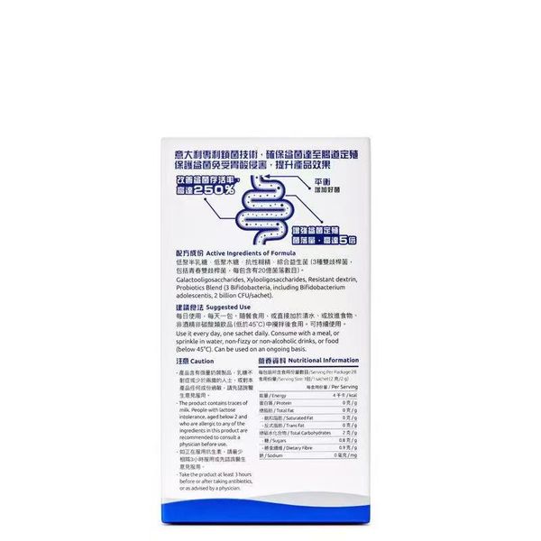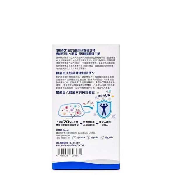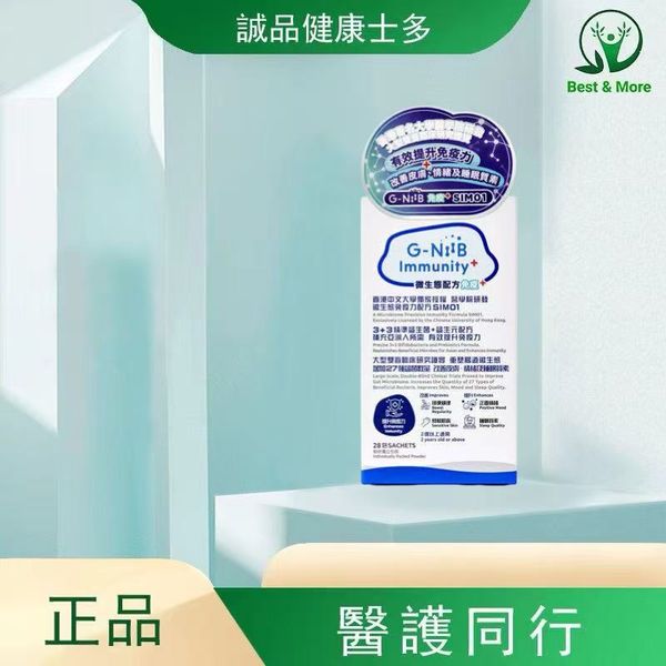 G-NiiB 免疫+ 含有經冷凍乾燥處理加上意大利專利包埋技術以改善菌種生存期的天然益菌和具高溫抗性的益生元的專利#配方,補充人體腸道的有益微生物和改善免疫力。