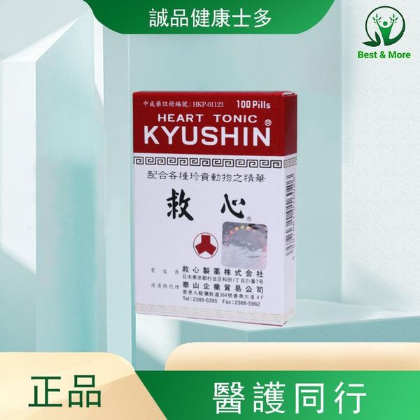原產地日本,擁逾百年歷史,佔據日本心臟藥市場80%以上,人字牌「救心」早已獲大眾認同及信賴,暢銷海外,成為居家及旅遊必備良藥。人字牌救心丸選用名貴藥材,功效卓越,可補心通陽、化瘀怯邪。臨床驗證能保護及改善心臟功能,增加心肌供血,益氣強心,由其現代人生活緊張忙碌,飲食習慣不良,容易引致高血壓高膽固醇,服食人字牌救心對預防心臟疾病非常有效。