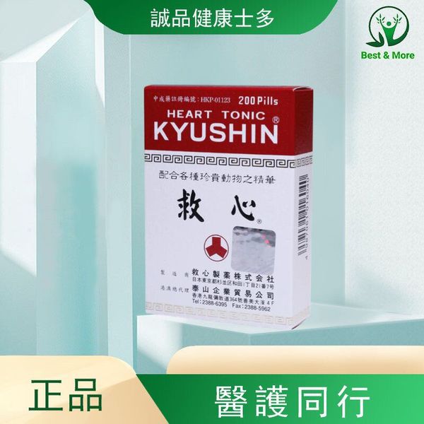 原產地日本,擁逾百年歷史,佔據日本心臟藥市場80%以上,人字牌「救心」早已獲大眾認同及信賴,暢銷海外,成為居家及旅遊必備良藥。人字牌救心丸選用名貴藥材,功效卓越,可補心通陽、化瘀怯邪。臨床驗證能保護及改善心臟功能,增加心肌供血,益氣強心,由其現代人生活緊張忙碌,飲食習慣不良,容易引致高血壓高膽固醇,服食人字牌救心對預防心臟疾病非常有效。