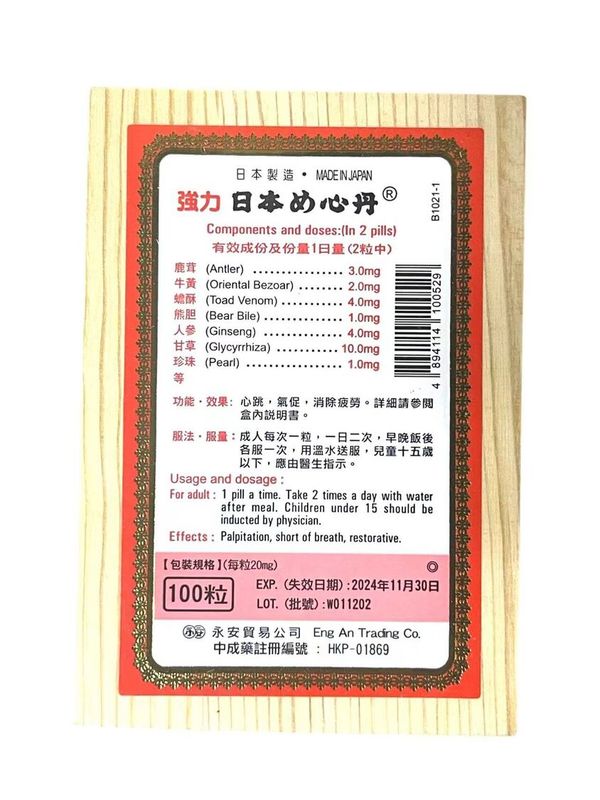 日本漢方-日字牌-救心丹(特選金粒) 100粒装 (4894114100529)
