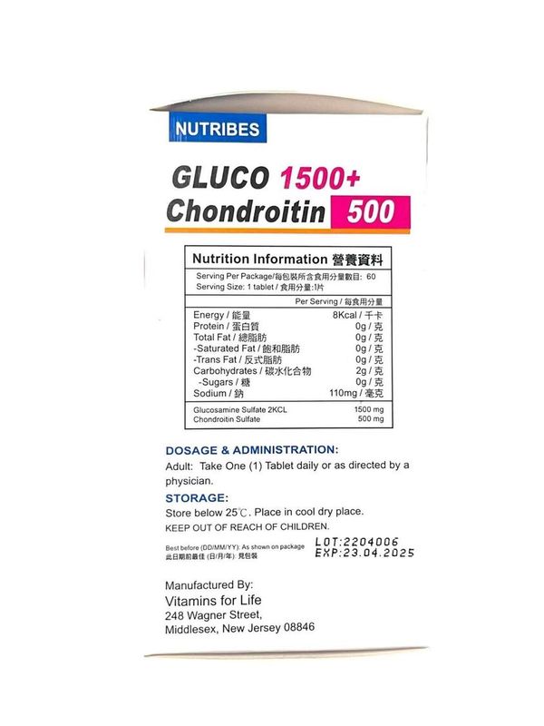 NUTRIBES-美國製造(能得健)骼康素[葡萄糖胺+軟骨素]60粒 到期日:04/2026