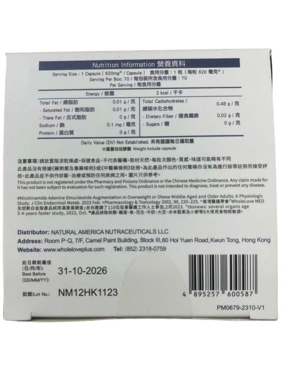 WholeLove Plus-愛完全WholeLove MED NMN EX Plus 32000+mg 白金版 (70粒)【香港行貨】有效期:10/2026