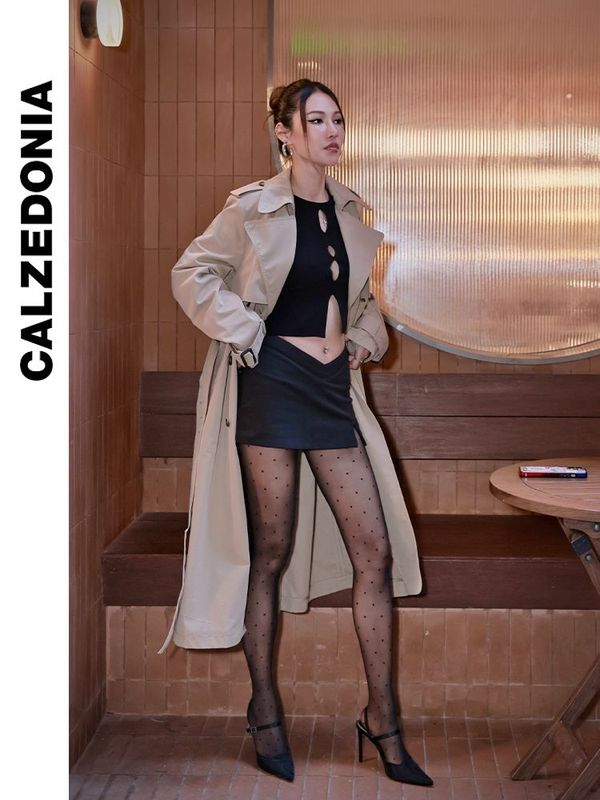 女士萊卡30D舒適貼膚 波點黑色絲襪 連褲襪