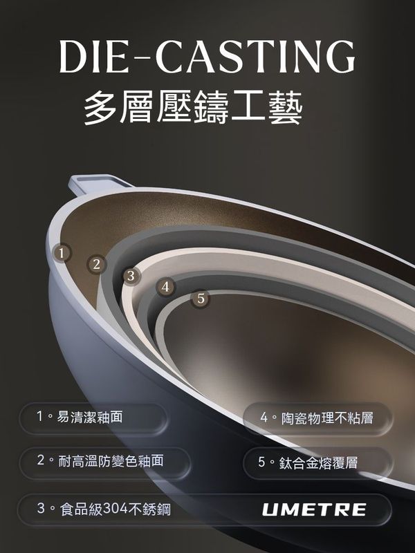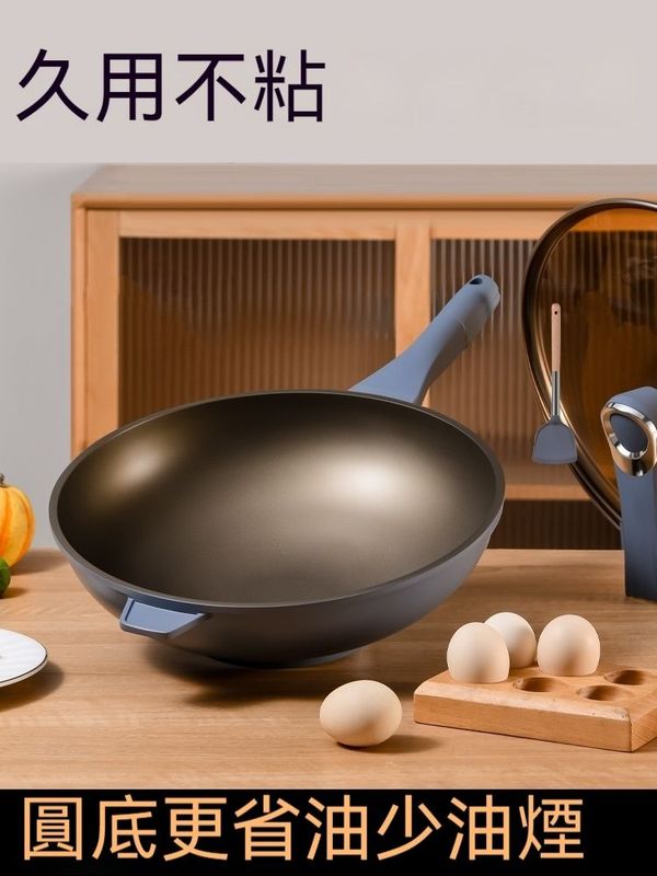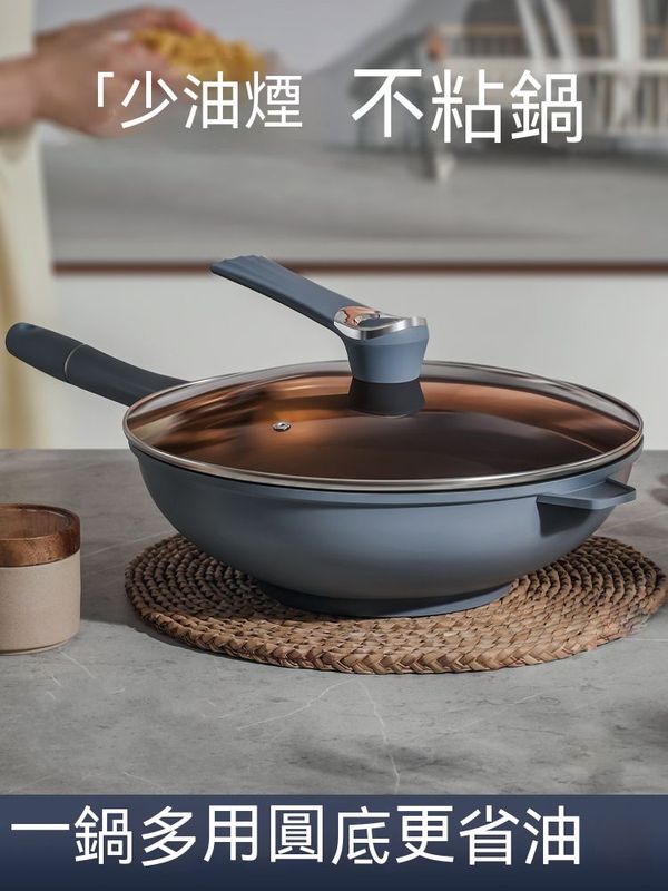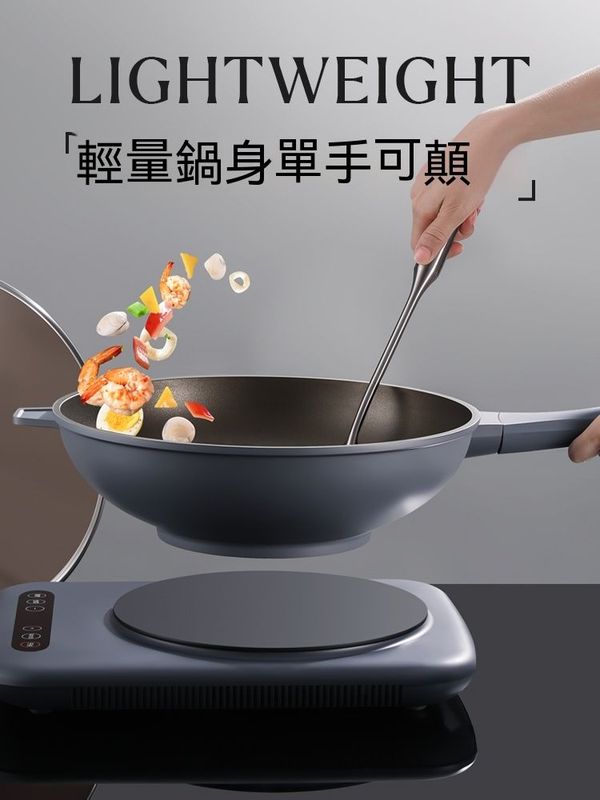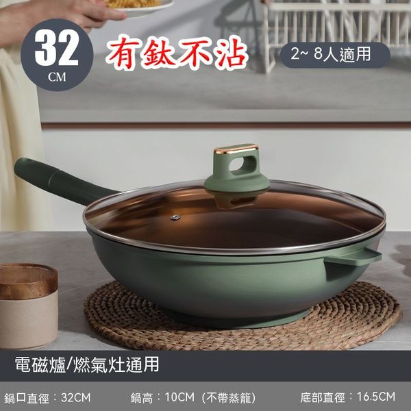 ● (電磁爐適用) 無塗層有鈦不黏有蓋炒鍋 32CM (帶耳)