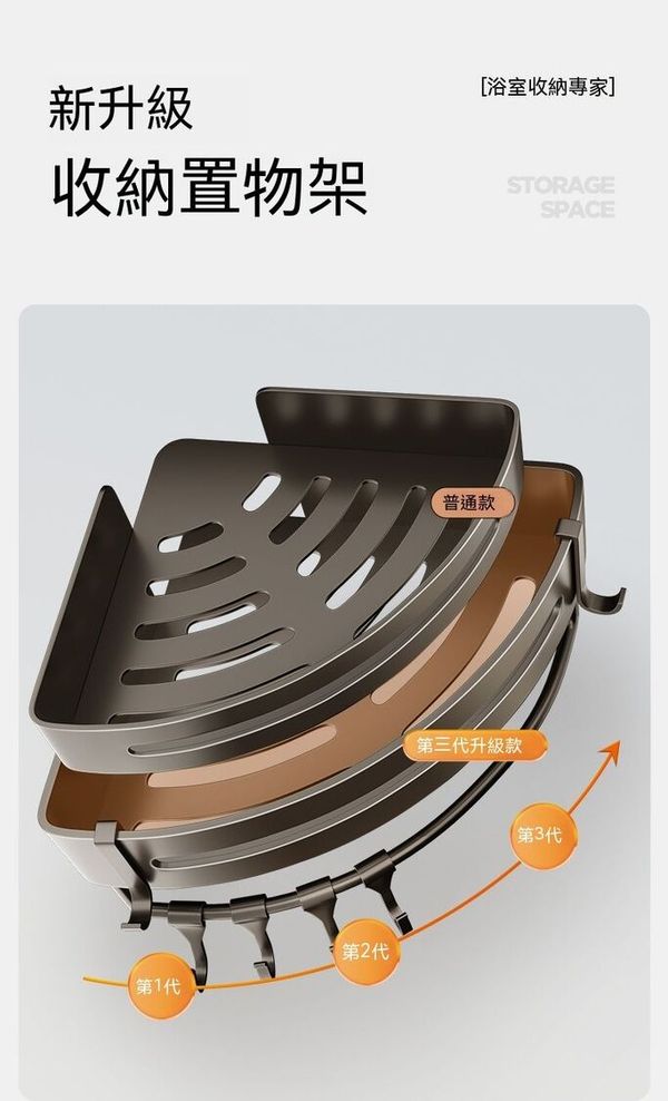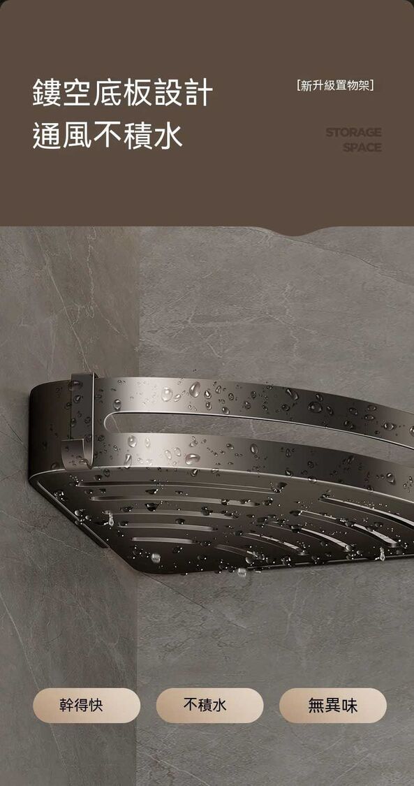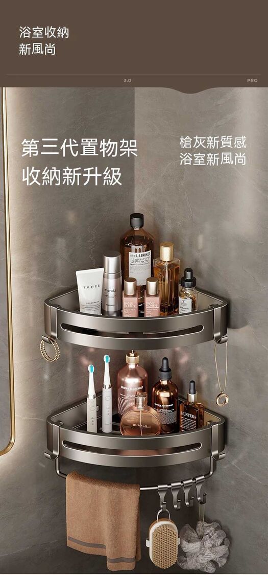 全城熱賣-鋁質免打孔無痕 衛生間置物架 衛浴收納架 壁掛浴室三角架 廁所轉角 浴室置物架 鋁質掛籃 掛鉤 廚房置物架 化妝品收納架加厚款單層槍灰升級款三層亮銀