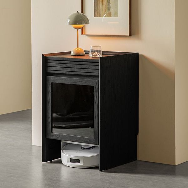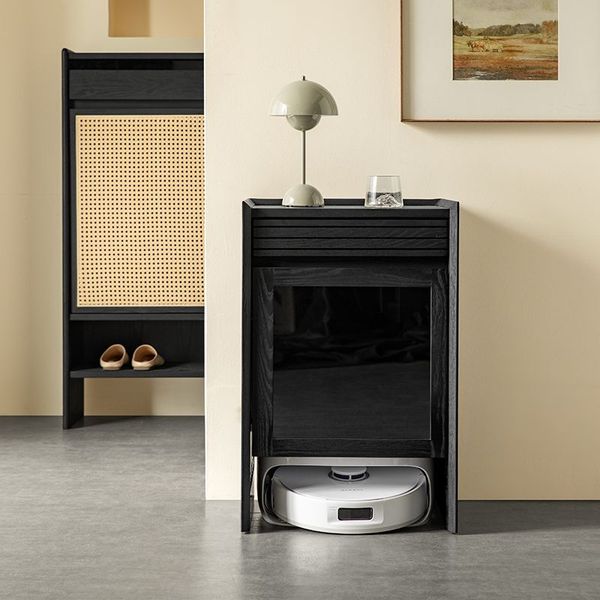日本熱銷-掃地機器人櫃 掃地機櫃 黑色實木移動矮櫃邊櫃 收納櫃 白蠟木