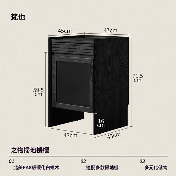 掃地機器人櫃 掃地機櫃 黑色實木移動矮櫃邊櫃 收納櫃 白蠟木
