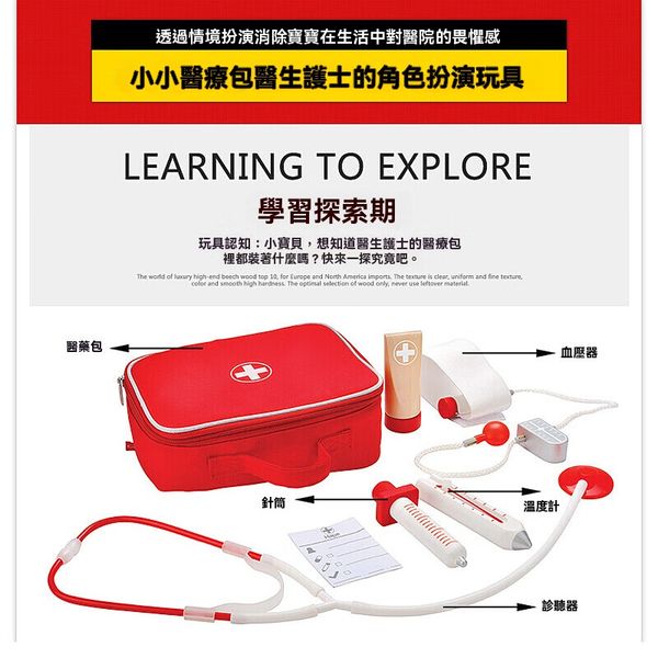 Hape扮嘢玩具 木製化妝仿真套裝 小公主情景互動禮物 E3010 迷你醫療箱