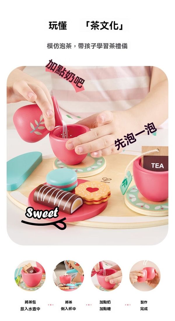 Hape 扮嘢玩具 木製化妝梳妝台連下午茶套裝 小公主角色扮演禮物 E3207 精緻下午茶茶具套裝