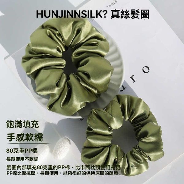 全城熱賣-真絲枕頭髮圈 加棉填充枕頭大腸髮圈 睡眠柔軟不傷發 桑蠶絲髮圈 頭繩 發鉓 填充款6CM 豆綠色