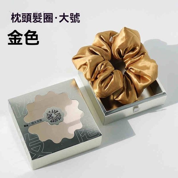 全城熱賣-真絲枕頭髮圈 加棉填充枕頭大腸髮圈 睡眠柔軟不傷發 桑蠶絲髮圈 頭繩 發鉓 填充款6CM 金色色