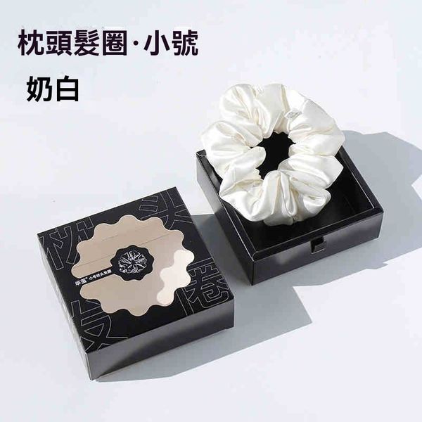 全城熱賣-真絲枕頭髮圈 加棉填充枕頭大腸髮圈 睡眠柔軟不傷發 桑蠶絲髮圈 頭繩 發鉓 填充款4.5CM 奶白色