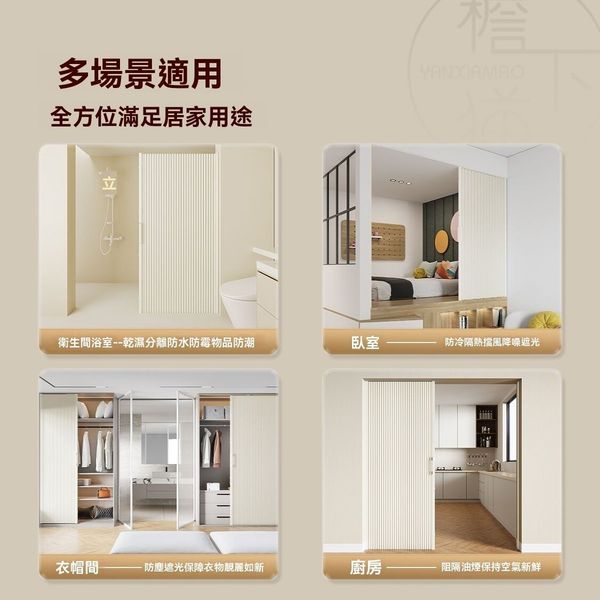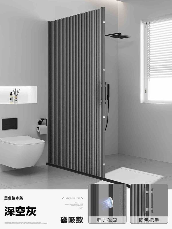隱形浴簾隔斷 防水防黴浴室門 高檔磁吸摺疊淋浴門 衛生間遮擋簾乾溼分離P款:【適用牆距160-190厘米】簾寬190*高240cm