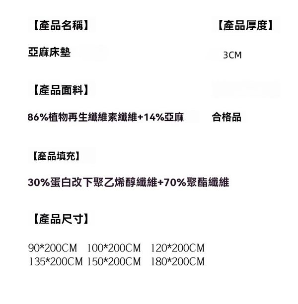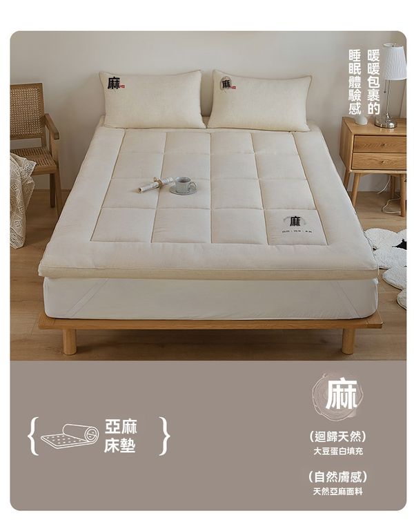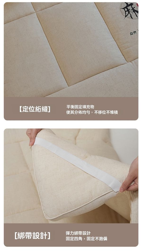 天然亞麻床笠榻榻米墊褥—大豆纖維填充 防蟎抗菌 四季家用 尺寸:150*200cm+3cm NaturalLinenFittedTatamiMattressPadwithSoybeanFiberFillingSize:150*200cm+3cm