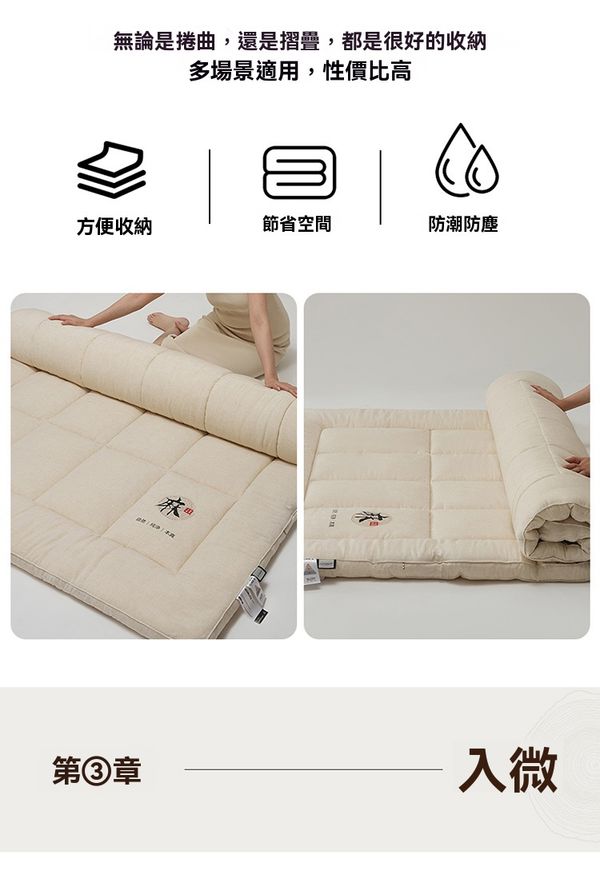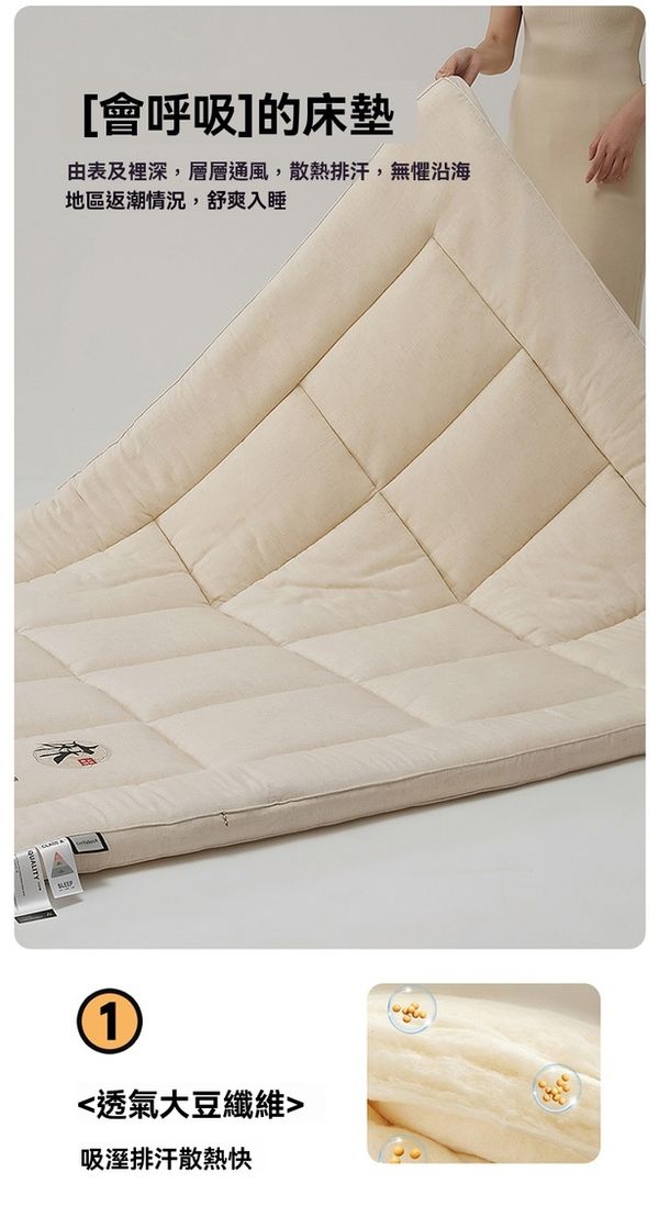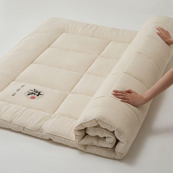 天然亞麻床笠榻榻米墊褥—大豆纖維填充 防蟎抗菌 四季家用 尺寸:150*200cm+3cm