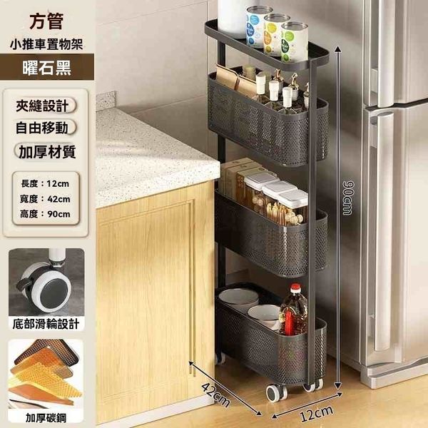 窄縫收納櫃 可移動夾縫置物架 抽屜式多功能多層儲物推車 儲物抽屜 儲物籃 層架 活動儲物車方管*4層夾縫小推車*雅黑