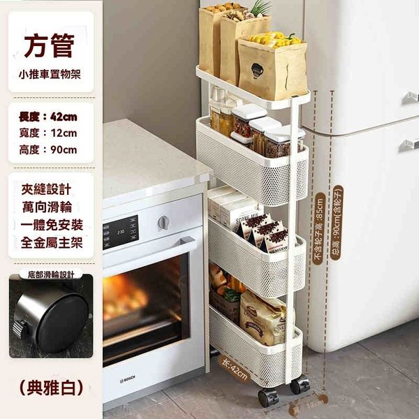 窄縫收納櫃 可移動夾縫置物架 抽屜式多功能多層儲物推車 儲物抽屜 儲物籃 層架 活動儲物車方管*4層夾縫小推車*奶白