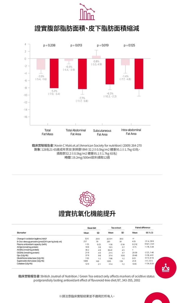 .綠茶萃取物中的兒茶素可減少體內脂肪,提升抗氧化能力