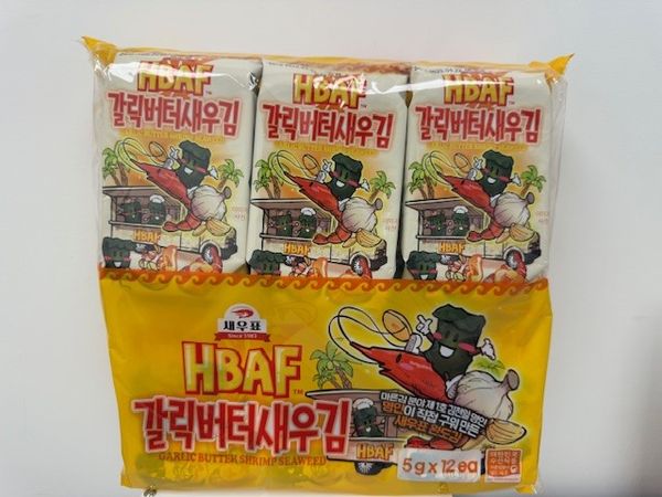 促銷特價- HBAF 蒜蓉黄油虾味海苔 蒜蓉牛油虾味紫菜 X 12 包 EXP : 2025.4.22
