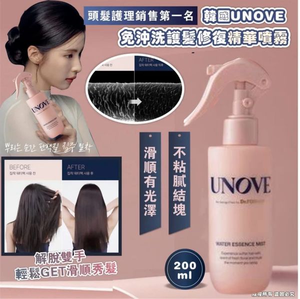 UNOVE 新款 蛋白質營養護髮噴霧 200ml +30ml 粉色 [平行進口] 噴霧式護髮精華 TENDER BLOOM